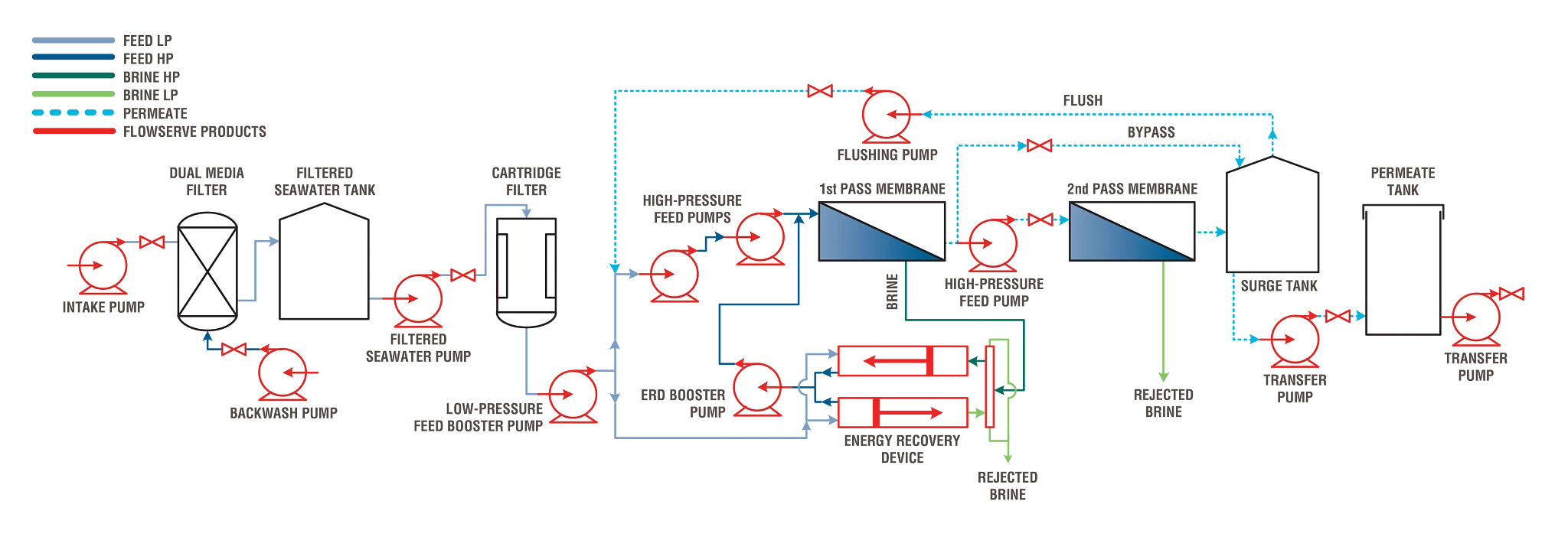无论是饮用水还是工业用途,您会发现Flowserve的泵、阀门和应急关断阀(ERD)在众多海水淡化厂中发挥着关键作用。我们的产品以其高效率和长期可靠性,帮助客户降低拥有成本,延长正常运行时间。